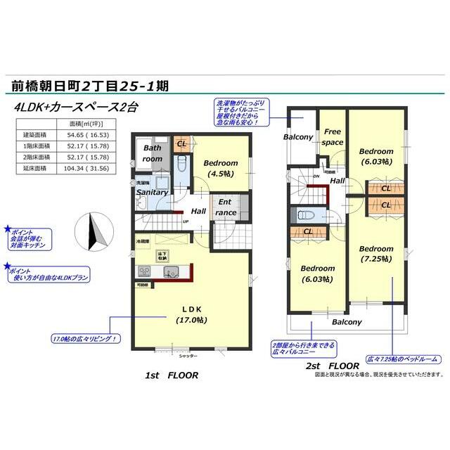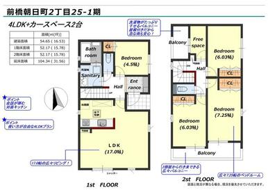 号棟番号:1号棟 総戸数:1戸 1号棟 前橋朝日町2丁目 第1期 【法令】宅地造成工事規制区域 準防火地域【その他制限事項】建蔽率:角地緩和 延床 面積にインナーバルコニー部分約4.96平米含む ※詳細については担当営業店へお問合せください。また、現況と異なる場合は現況を優先させて頂きます。